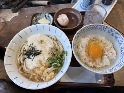 とろろうどんと卵かけご飯を頼みました。