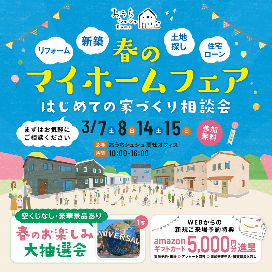 【3/7(土)・8(日)・14(土)・15(日)】はじめての家づくり相談会「春のマイホームフェア」土地探し、資金計画、間取りのことなど、